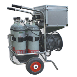 長管呼吸器由移動(dòng)式供氣源和呼吸器組合而成,備有30m固定管1根、10m長管兩根,*大使用距離50m,配有2套呼吸罩,可供兩人同時(shí)使用。